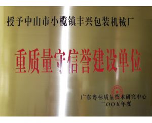 中山市豐鑫智能科技有限公司,其前身為 2003 年成立的中山市小欖鎮(zhèn)豐興包裝機(jī)械廠(chǎng),是一家專(zhuān)注于自動(dòng)化包裝機(jī)械研發(fā)與生產(chǎn)的制造工廠(chǎng)。豐鑫智能科技承載了中山市小欖鎮(zhèn)豐興包裝機(jī)械廠(chǎng)的許多知識(shí)產(chǎn)權(quán)及珍貴榮譽(yù),諸如擁有 20 余年歷史的廣東老字號(hào)品牌商標(biāo)、發(fā)明專(zhuān)利金銀銅獎(jiǎng)等,大批專(zhuān)利證書(shū)、資質(zhì)證明以及各種認(rèn)證等。豐鑫智能科技運(yùn)營(yíng)以來(lái),新的榮譽(yù)和資質(zhì)也在持續(xù)涌現(xiàn)。