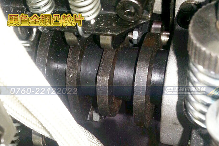 4、全新精工型半自動打包機(jī)凸輪軸上的凸輪片,采用黑色全鋼材料,耐磨損,經(jīng)久耐用;