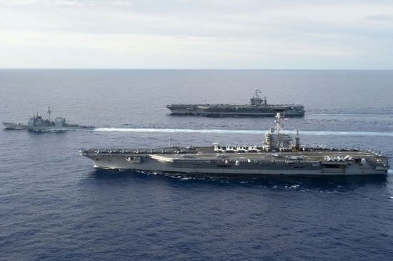 美國海軍兩個(gè)航母戰(zhàn)斗群和一個(gè)海軍陸戰(zhàn)隊(duì)特遣隊(duì)已開始在西太平洋活動