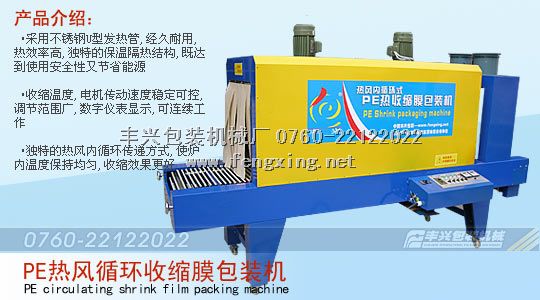 FX5040 type hot air internal circulation shrink packaging machine, is currently at home and abroad the latest model of automatic continuous contraction of packaging equipment, the furnace cavity built-in stainless steel U-shaped heating pipe, durable, high thermal efficiency, unique thermal insulation structure, both to achieve safety and energy saving;