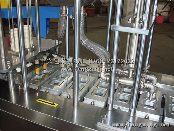 本機(jī)具有自動(dòng)膏體、液體灌裝,自動(dòng)溫控封口切邊,廢料收卷,全機(jī)采用優(yōu)質(zhì)材料制造,傳動(dòng)部件及電氣元件均為國(guó)內(nèi)名牌廠家提供,適合各種規(guī)格塑盒(杯),經(jīng)自動(dòng)定量灌裝后,進(jìn)行殺菌、打日期、自動(dòng)熱合封蓋、剪切、修整、落杯、廢料收卷等功能。