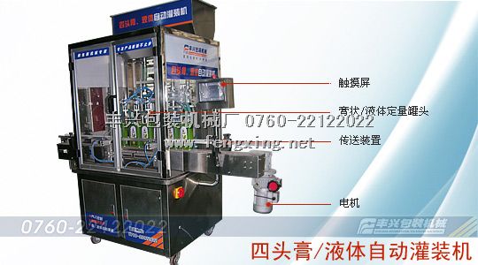 1.全自動(dòng)活塞式四頭膏液體灌裝機(jī)適用于醫(yī)藥、日化、食品、化工、農(nóng)藥及特殊行業(yè),是對(duì)膏體、液體進(jìn)行定量灌裝的灌裝設(shè)備。