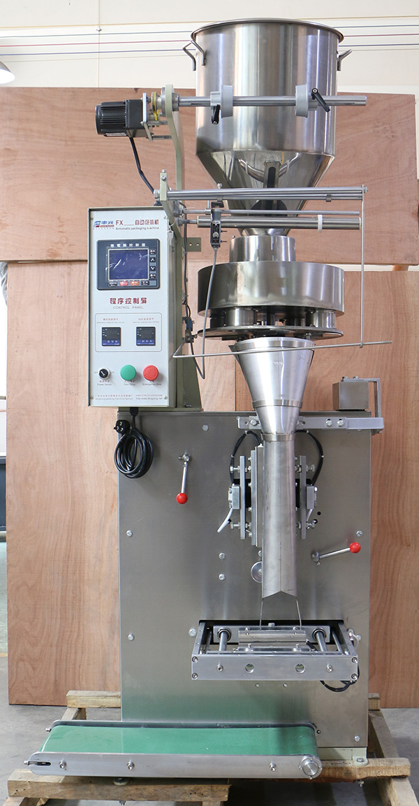 5、本機(jī)自動(dòng)完成計(jì)量、制袋、充填、(充氣)、封合、(打碼)、加易撕口、切斷(切口方式:鋸齒狀切口、連續(xù)易撕切口)、計(jì)數(shù)到產(chǎn)品輸出一次性完成。