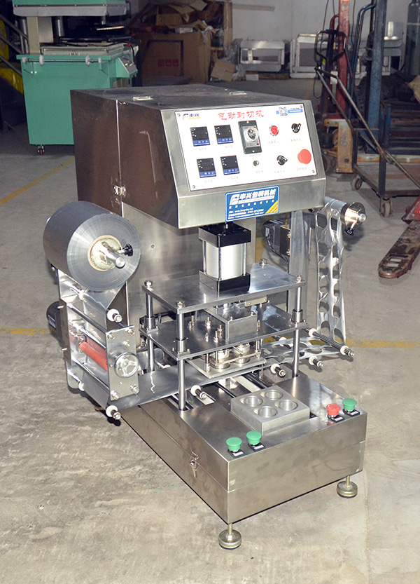 本定制機型屬于根據(jù)用戶提供的塑料盒/杯/碗/罐/桶/瓶等,量身定制的半自動封口包裝設備,實現(xiàn)了塑料杯、塑料盒、塑料罐的自動封口和切邊,平整、牢固,滿足了產量不高的生產需求。半自動機型目前有:1出1、1出2、1出4等;封口直接為5-25CM等不同直徑,杯口形狀不限于圓形、方形、多邊形及其他異形包裝容器??沙蔀椋蝴溠刻欠饪跈C、豆腐盒封口機、果凍封口機、酸奶封口機、米酒封口機、碗面封口機、口杯封口機、果汁封口機、綠豆沙封口機、奶茶封口機、薯片封口機、八寶粥封口機等等。