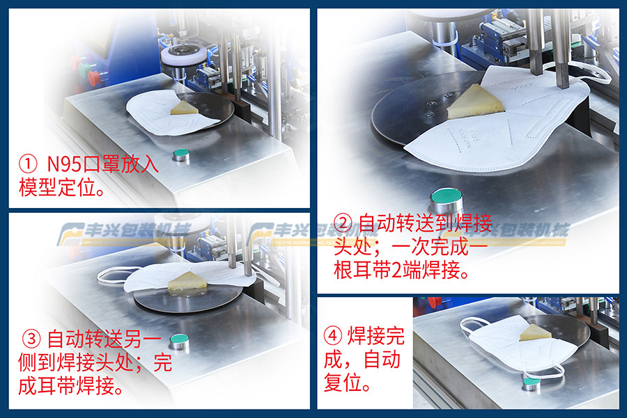 本機(jī)為半自動化機(jī)器,操作簡單,易學(xué)易會,性能穩(wěn)定,是提高口罩生產(chǎn)效率的機(jī)器設(shè)備。適用于N95耳帶焊接。