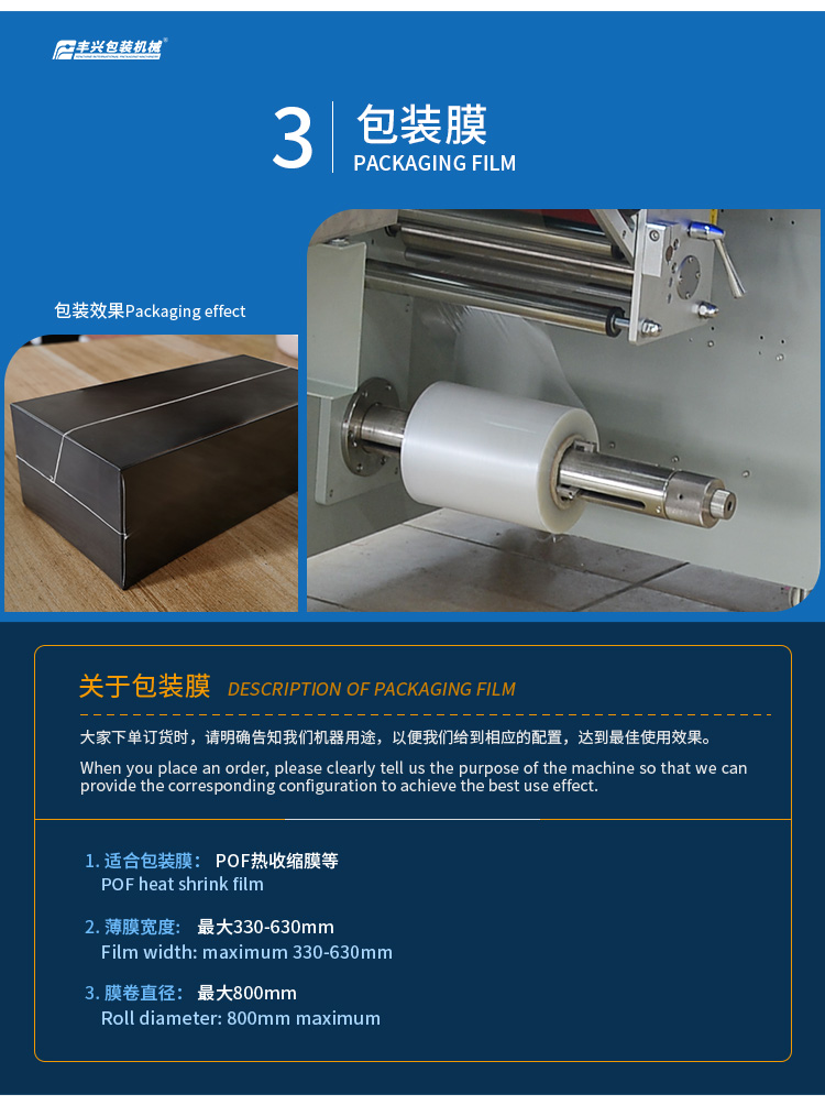 熱收縮膜枕式包裝機采用三伺服電機,兼容多款熱收縮膜包裝機的優(yōu)點,性能穩(wěn)定,操作簡單易上手,提升包裝產(chǎn)品裝袋效率;自動化程度高,可以自動識別產(chǎn)品長度,無需人工測量和設置參數(shù),一步到位、省時省膜,輕松完成熱收縮膜包裝,包裝后的產(chǎn)品封合線牢固,收縮效果平滑貼合;是企業(yè)熱收縮包裝的好幫手。