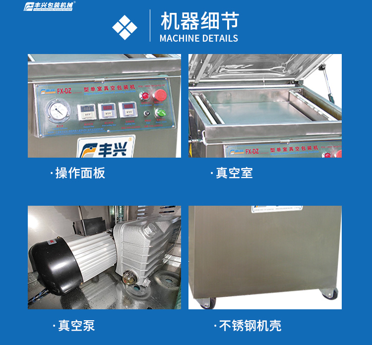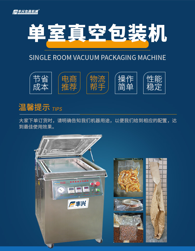 該機(jī)型操作簡便,配備數(shù)字控制面板與安全防護(hù)裝置,單循環(huán)時(shí)間約20-50秒,日處理量可達(dá)300-800包。廣泛應(yīng)用于肉類制品、堅(jiān)果干貨、醫(yī)療器械等領(lǐng)域的防潮防氧化包裝,兼具節(jié)能高效、維護(hù)成本低等優(yōu)勢,是提升產(chǎn)品附加值的理想選擇。